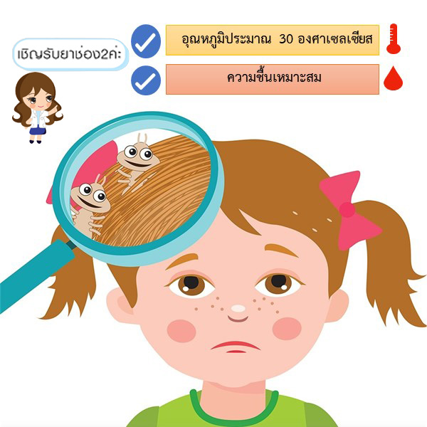 Permethrin 1% shampoo ชโลมลงบนผมที่เปียกทิ้งไว้ 10 นาทีแล้วล้างออก