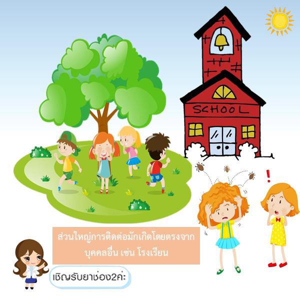 การติดต่อมักจะพบส่วนมากในเด็กในระดับอนุบาลและประถมศึกษา โดยเฉพาะเด็กผู้หญิง โดยจะแบ่งเป็นการติดต่อเป็น 2 แบบคือ การติดต่อโดยทางตรงและทางอ้อม